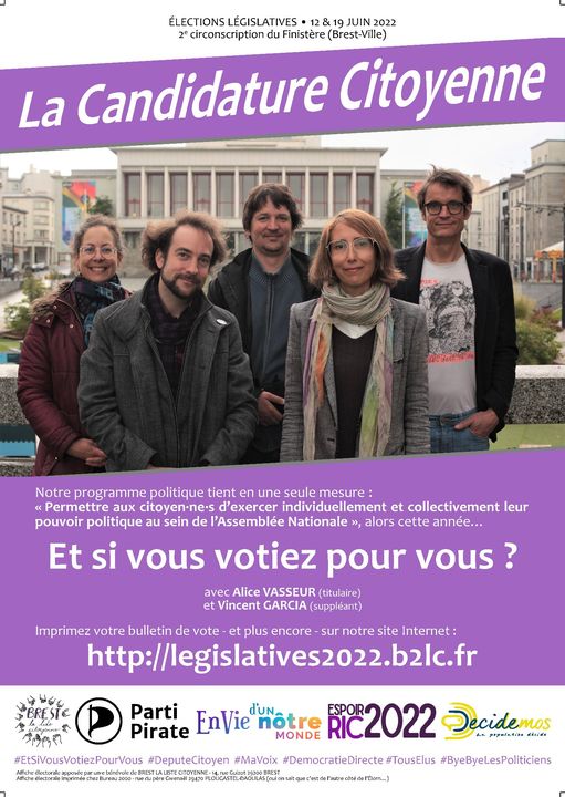 Brest List Citoyenne est un regroupement qui s'est formée dans le cadre des élections municipales de 2020 pour promouvoir la démocratie réelle localement. Depuis, au coté de Decidemos, le mouvement s'est rallié à Décidons Nous-Mêmes! et a participé aux legislatives de 2022 et 2024.